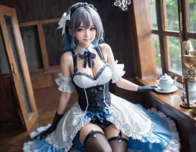 青髪のメイドさん