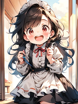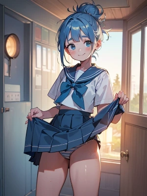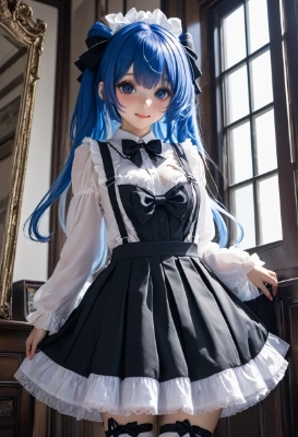 おめかしする青ポニテメイドちゃん