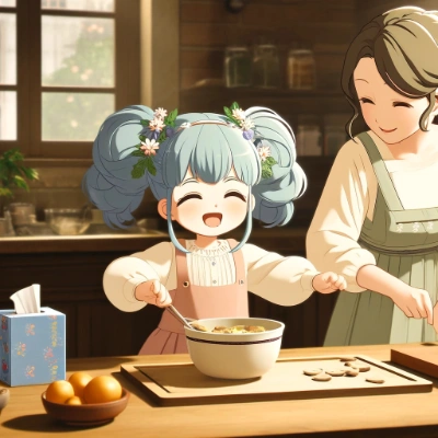 青い髪の母