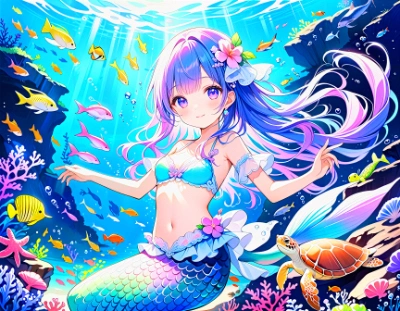 青髪マーメイドちゃん