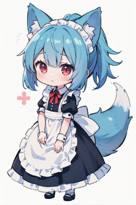 獣のコスプレな青ポニテメイドちゃん