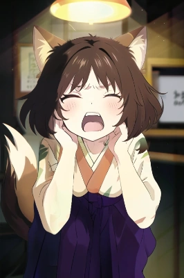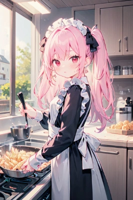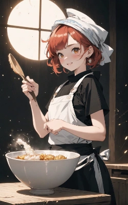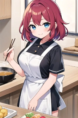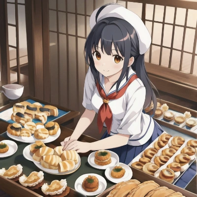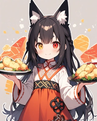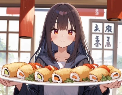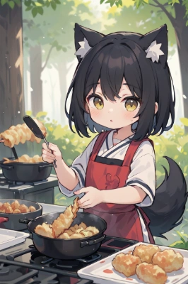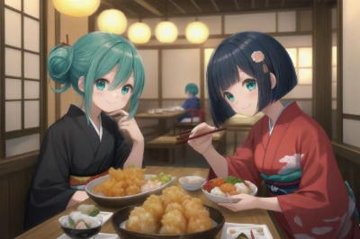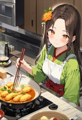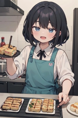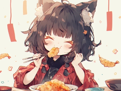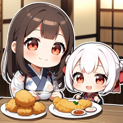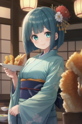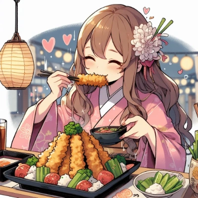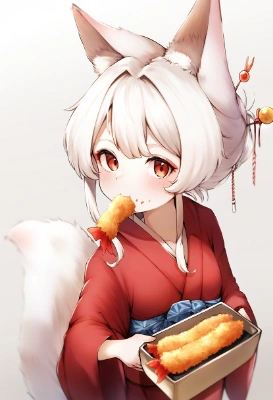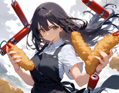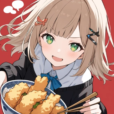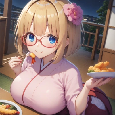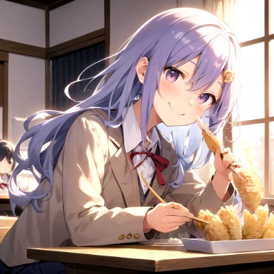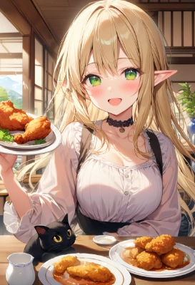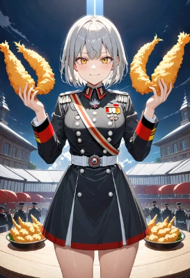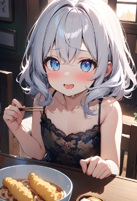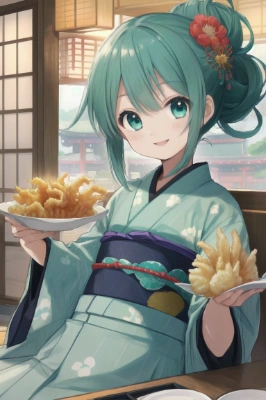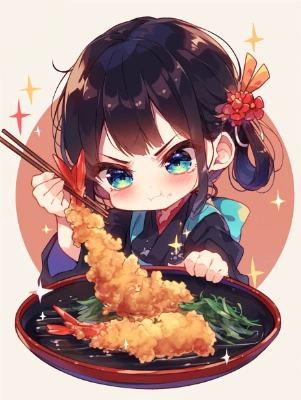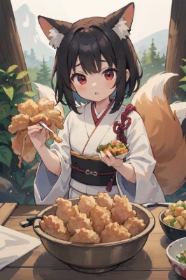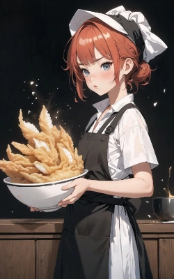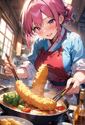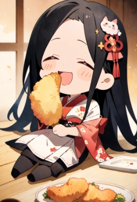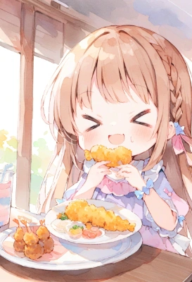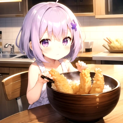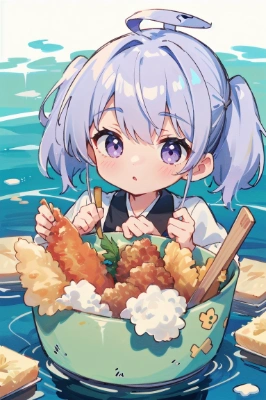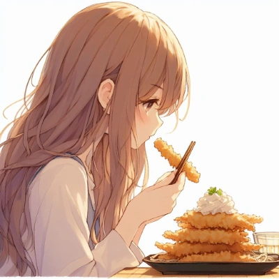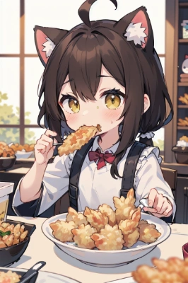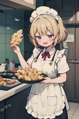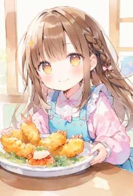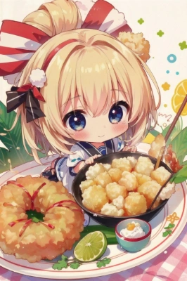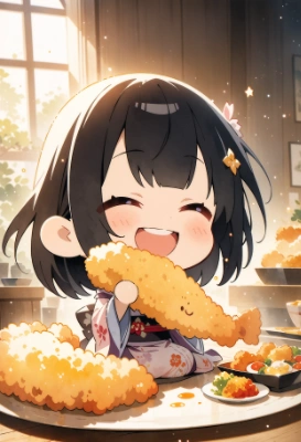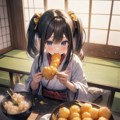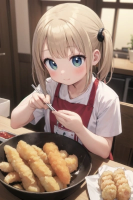 大量の天ぷらを食べさせられる青ポニテメイドちゃん