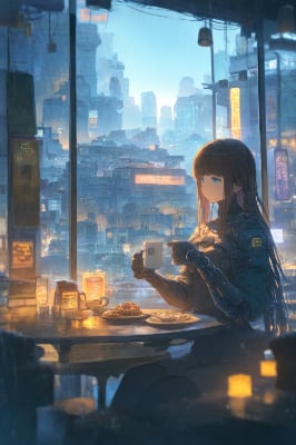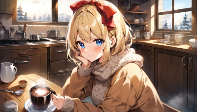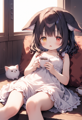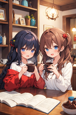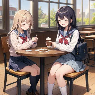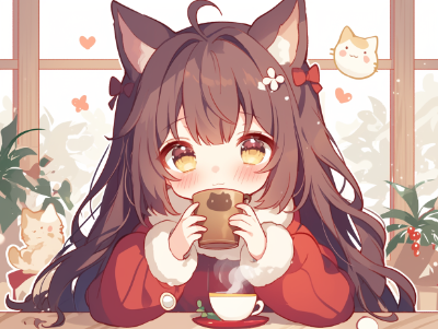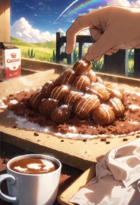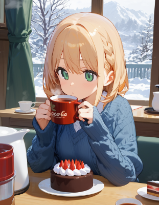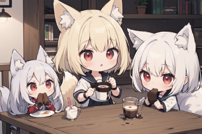(DALL-E3×NovelAI)甘いもので一休みしたらどうかニャ?