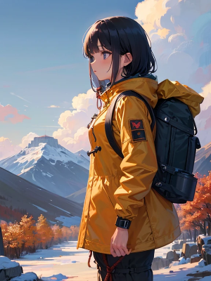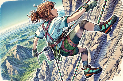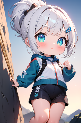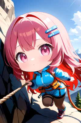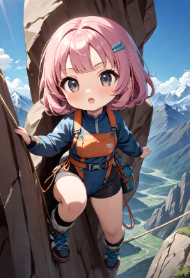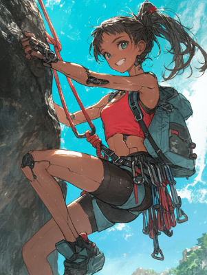 ロッククライミングをするサイボーグ娘