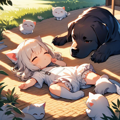 白猫と黒犬・お昼寝