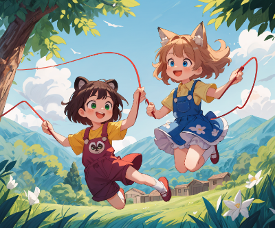 コン子とポン子・縄跳び