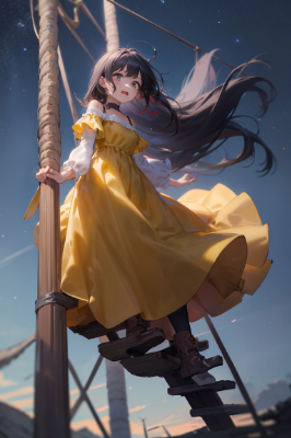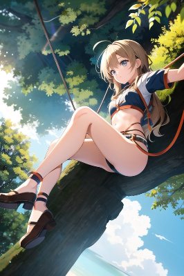 縄梯子に登るおてんばな女の子