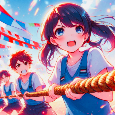 綱引きをする、黒髪ツインテール少女…!!(8枚)