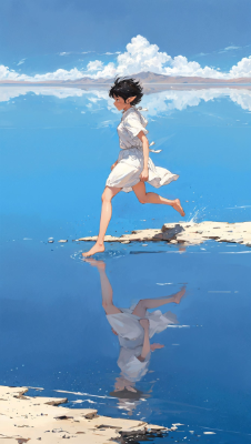 湖を走る少女