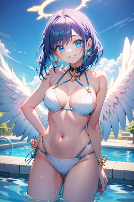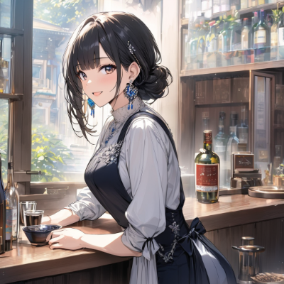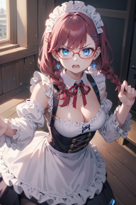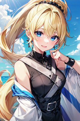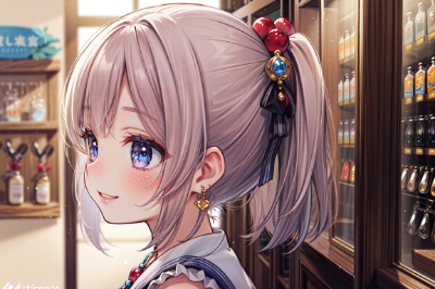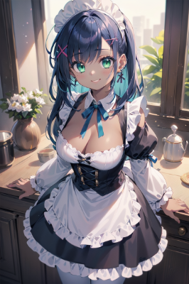 耳飾りと青ポニテメイドちゃん