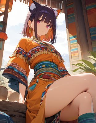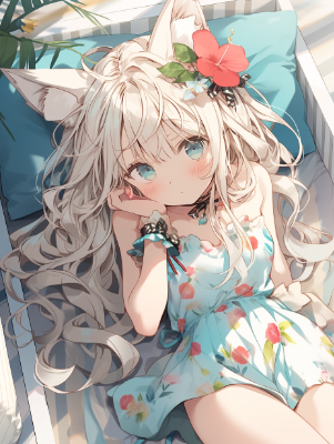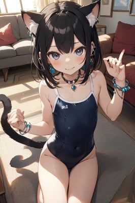 耳飾りをつけた猫耳少女