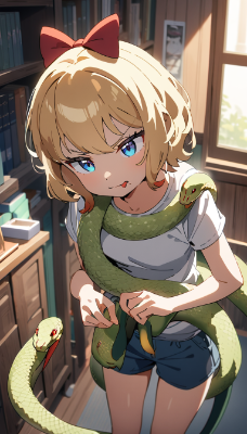 蛇とキュウリを勘違いして超驚く猫娘さん(9枚)