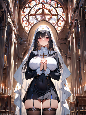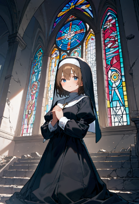 荒廃した教会で祈りをささげる