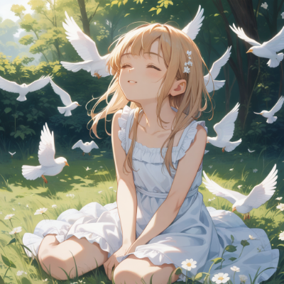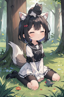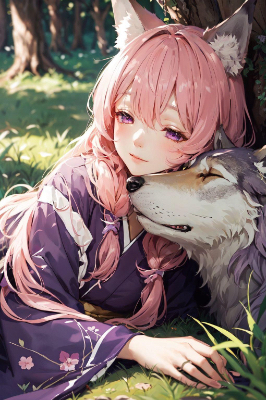 平和を祈る瞑想をするおおかみ娘