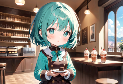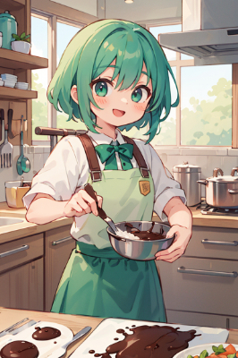 チョコミントカラーのうちの娘たち(ミントブルーずきんの少女錬金術師)