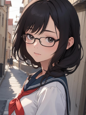 眼鏡ボブJ〇ちゃんのセーラー服姿