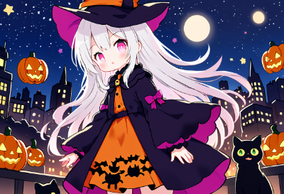 ハロウィンパレードの待ち合わせをする魔女っ娘