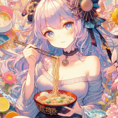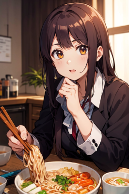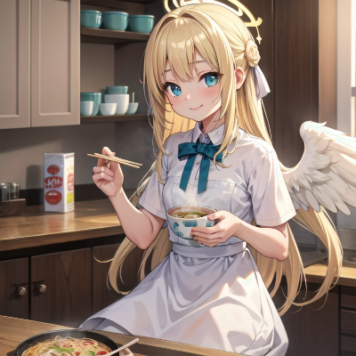 ラーメンを食べる天使さん