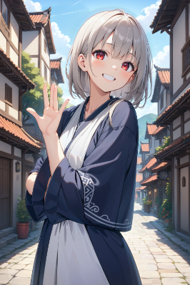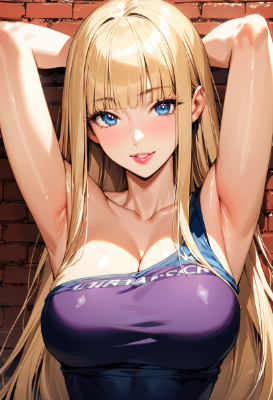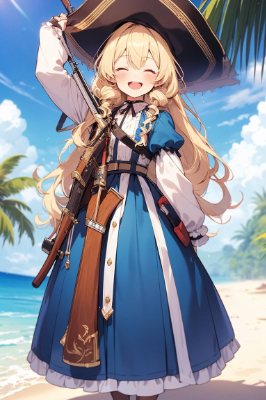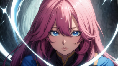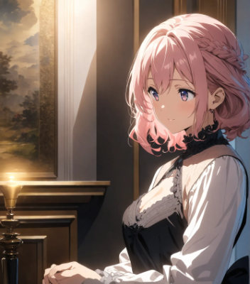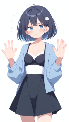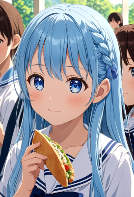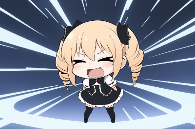 アニメ塗りっぽい青ポニテメイドちゃん