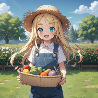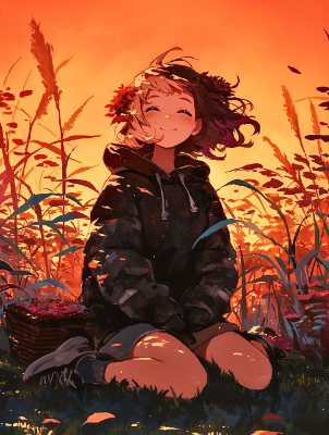 お花畑に居る女の子
