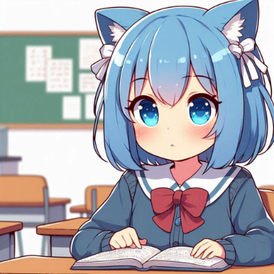 教室でお勉強する青髪猫耳さん