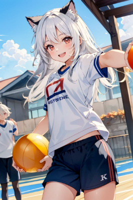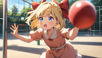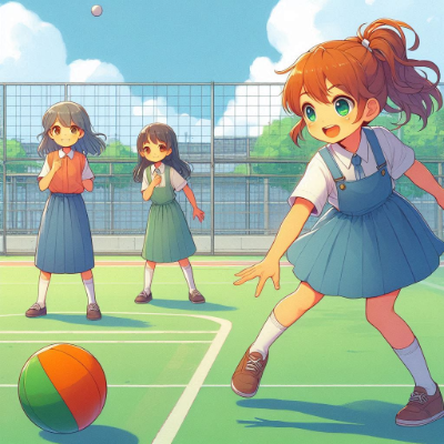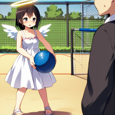 ドッジボールの説明を聞く天使ちゃん:(ふっふっふっ、空を飛べる私は無敵なのです)「あ、空飛んじゃ駄目だからね」「なんと!」