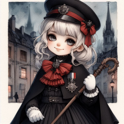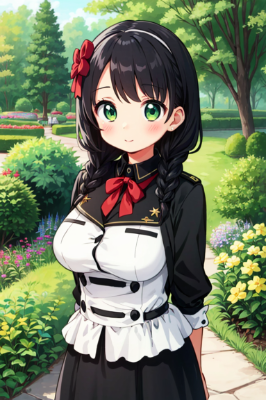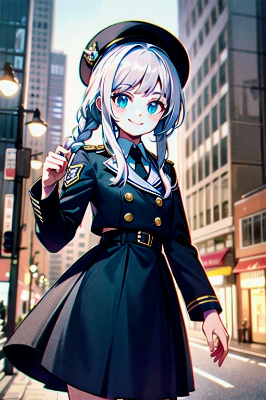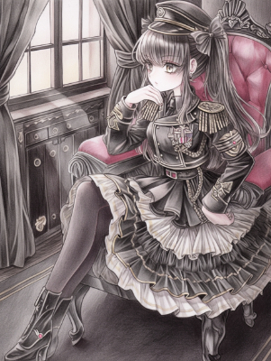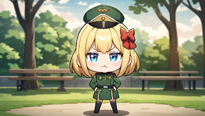 公園不機嫌そうに待っている軍服な小さなムスメさん