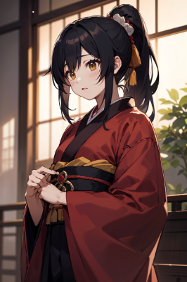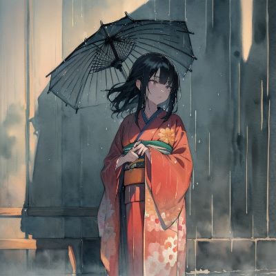 和服 雨と花畑