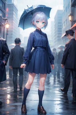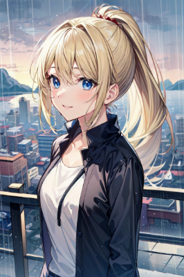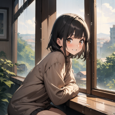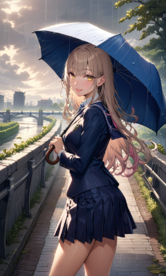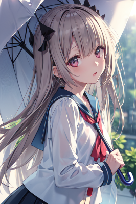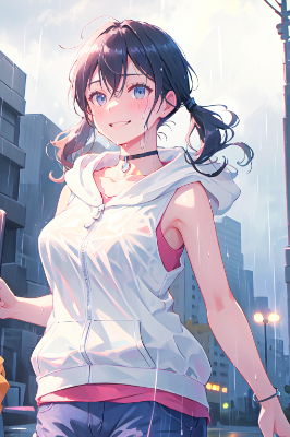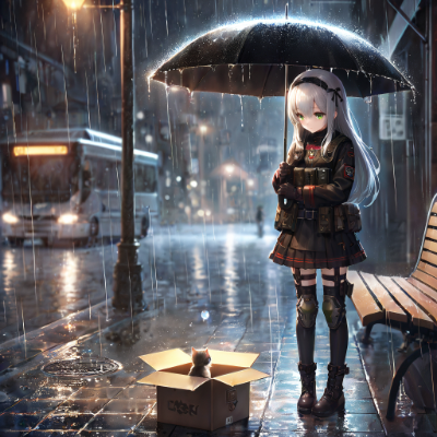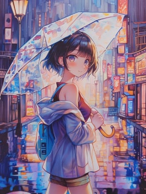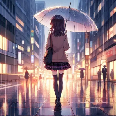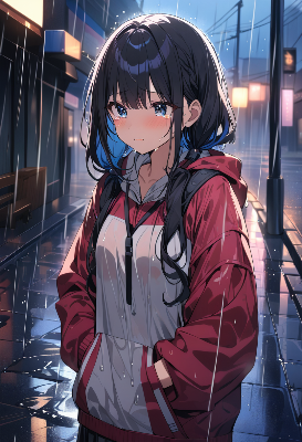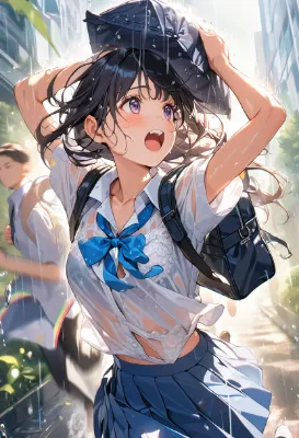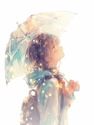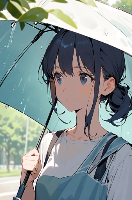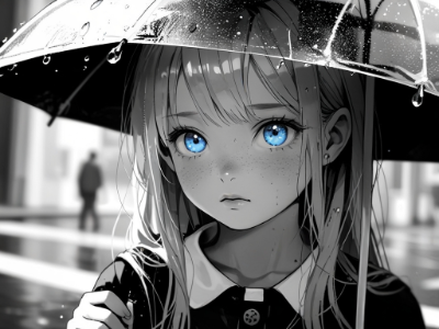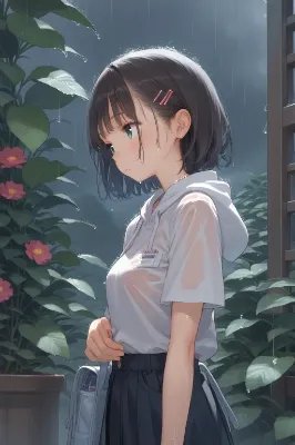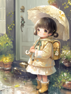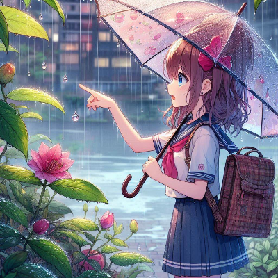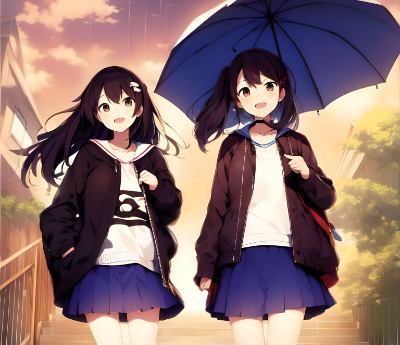小雨の中の少女たち