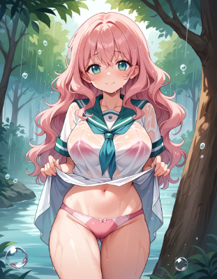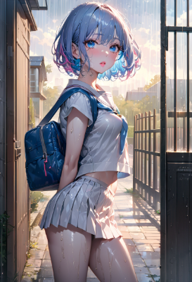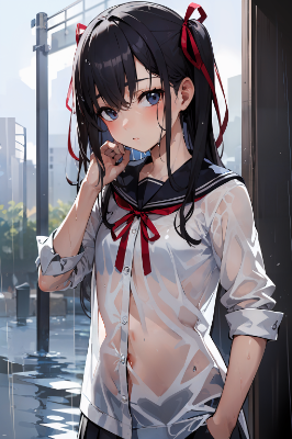 雨で服が…///