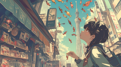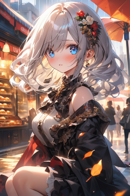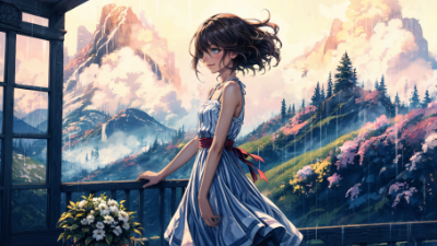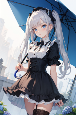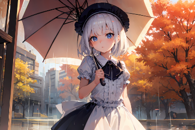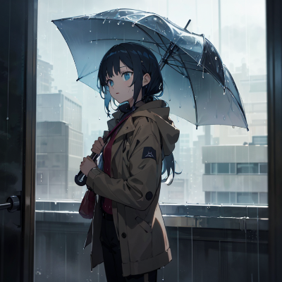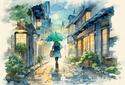 雨 女の子 アールヌーボー アニメ 傘 街 植物