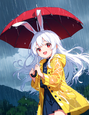 大雨で色んな傘で遊ぶ白うさちゃん♪