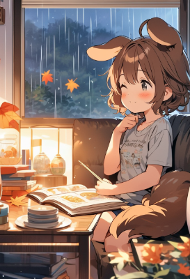 雨ときつね娘