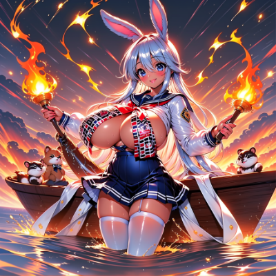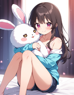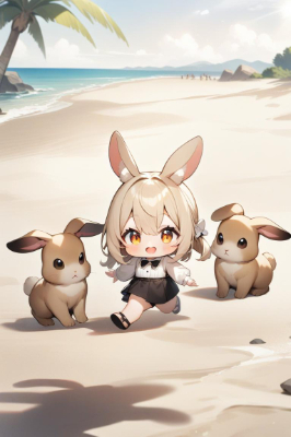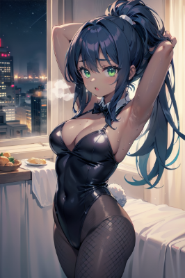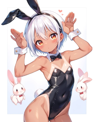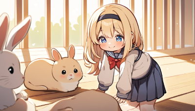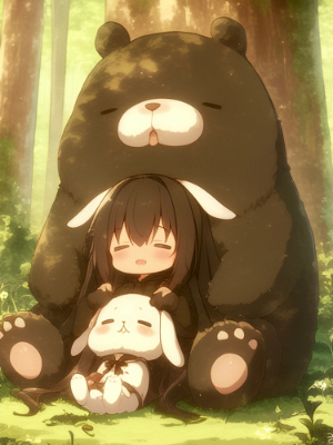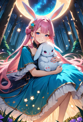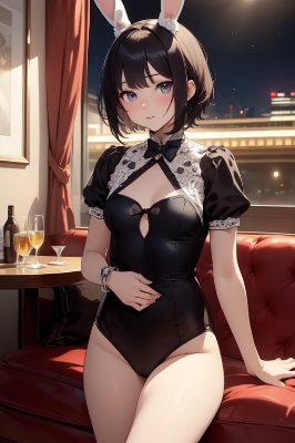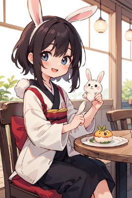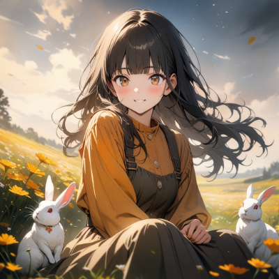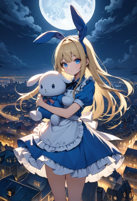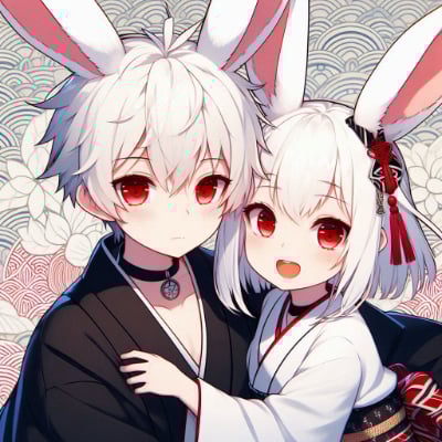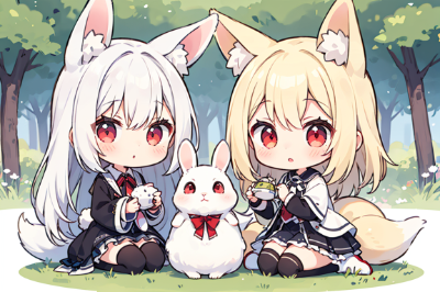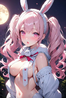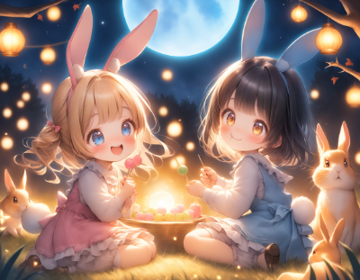 黒髪&ブロンド・ウサギさんと一緒にお月見をした