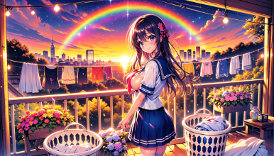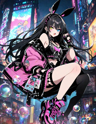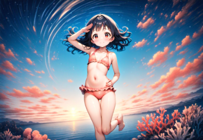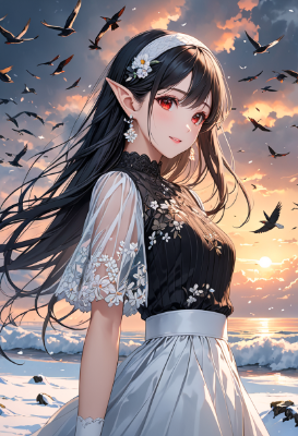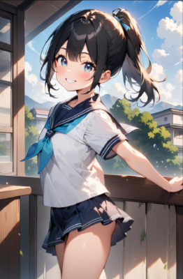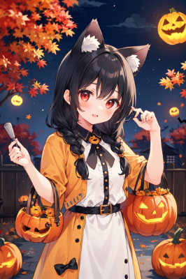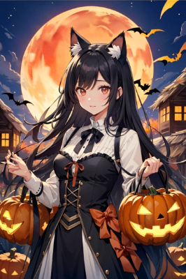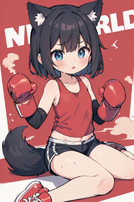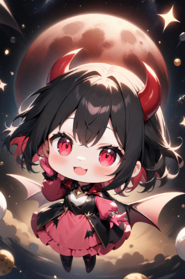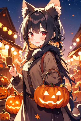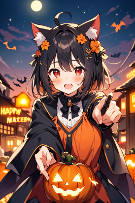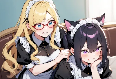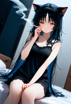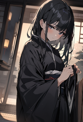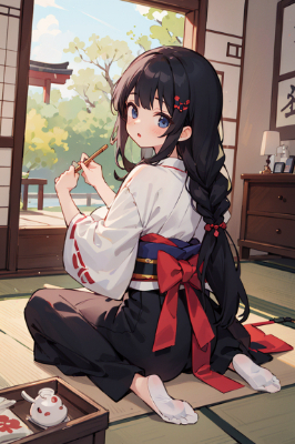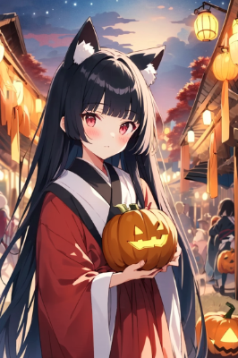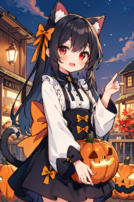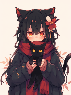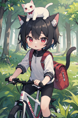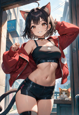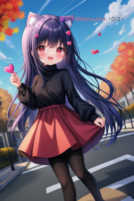 黒髪で、猫耳な赤めなうちの子…(2枚)