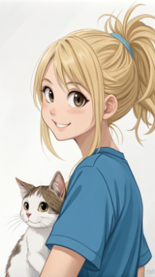 ハーフアップでヘタにゃんを見守る白うさちゃん
