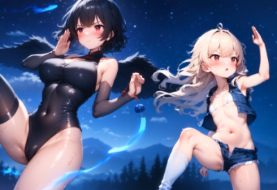 魔王様のコスプレをしたシスターちゃんとミリロリちゃんのコスプレをしたクロちゃん