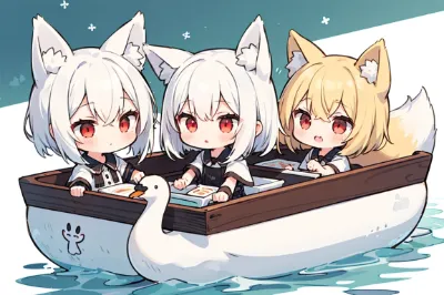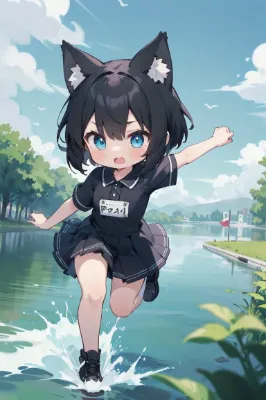わたちは、アクマだから、湖の上も歩けるでしゅ🎵