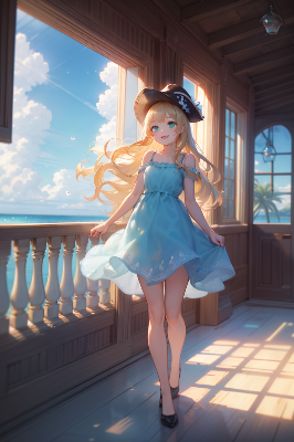 邸宅の軒に吊るされた風鈴とお嬢さま(じつは海賊の頭)