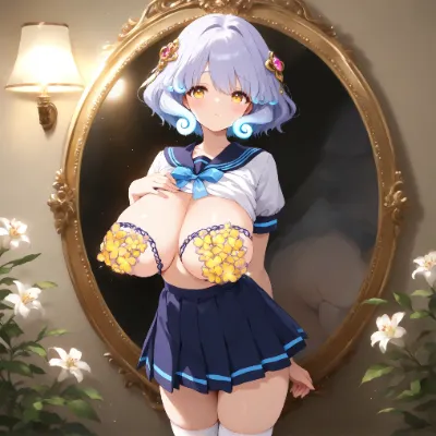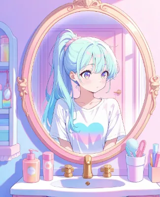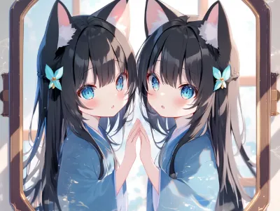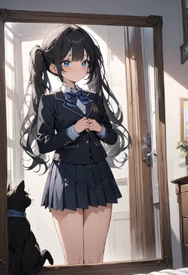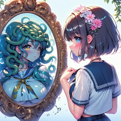 見て見て!この前古道具屋で買った鏡、なんかすごく変だよ!♥