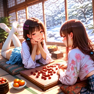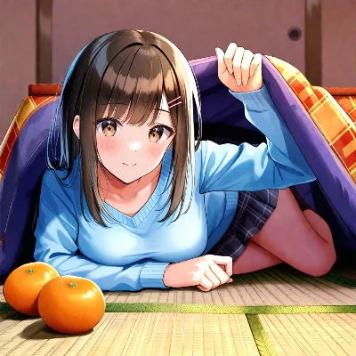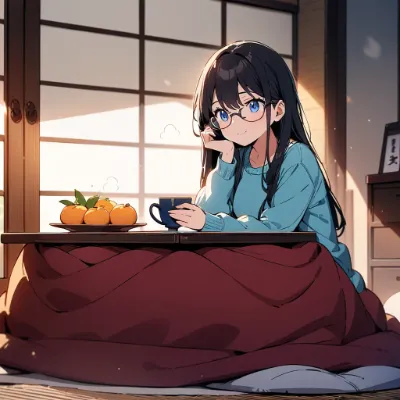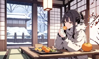 いっしょに暖ったまって、みかん食べよ