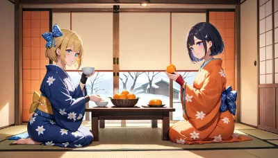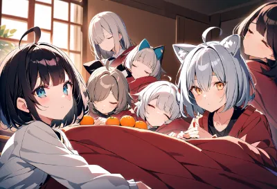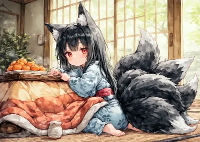 炬燵とみかんと猫娘