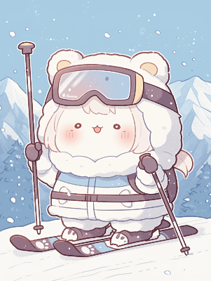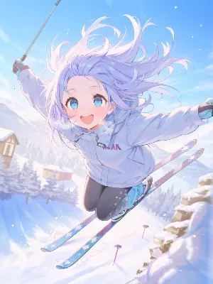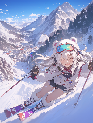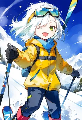 スキーをする精霊様