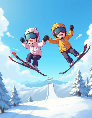 黒髪&ブロンド・スキージャンプをした