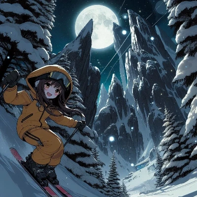 月夜のスキー