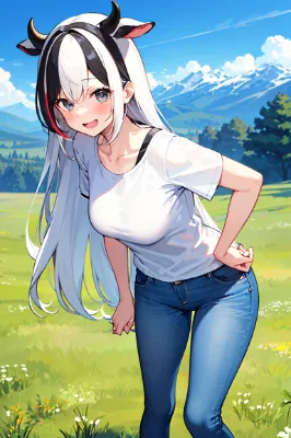 牛娘にいろいろなポーズをしてもらいました