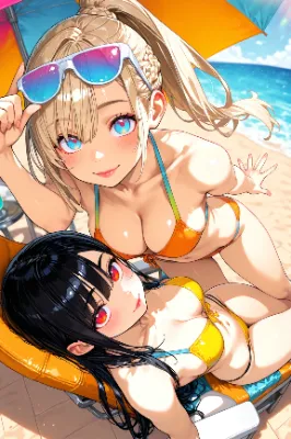 ビーチでくつろぐお姉さんズ
