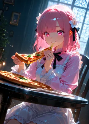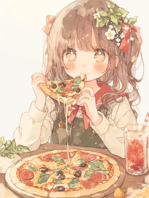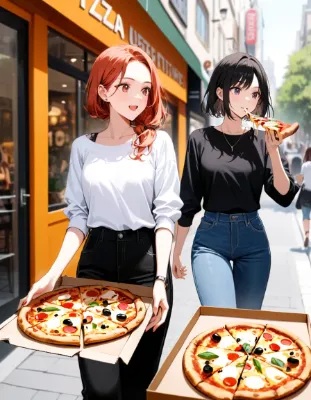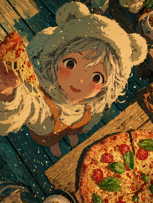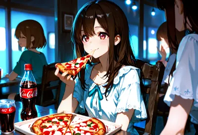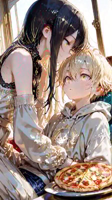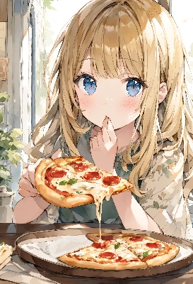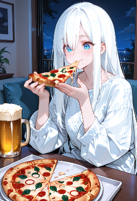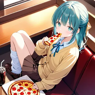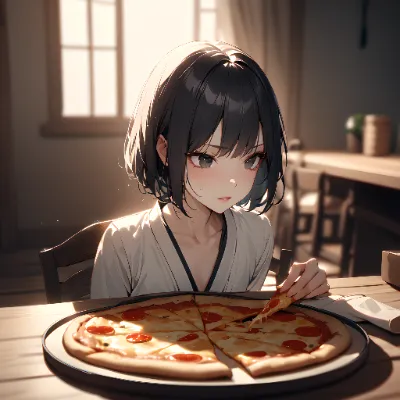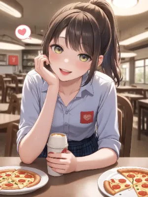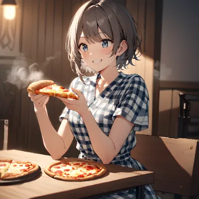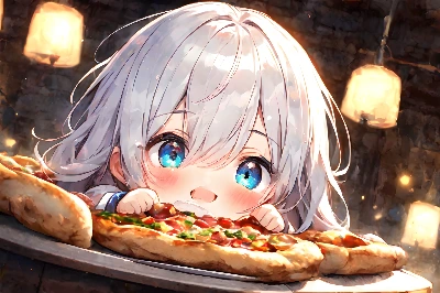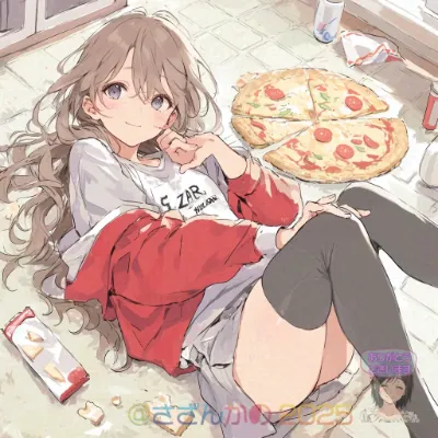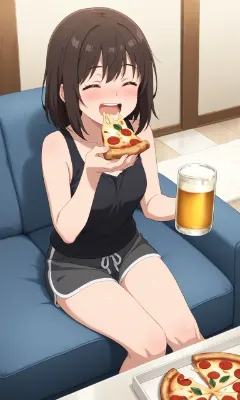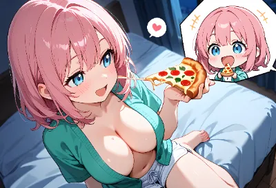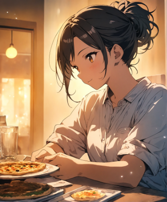 「こんなに美味しいピザがあるのに……君と一緒にいると、食べる気持ちより君と触れ合っていたいって思っちゃう」「それは嬉しいよ。でも、君が美味しそうに食べる姿を見るのは僕にとって何よりも幸せだから……少しだけ食べて欲しいかな」