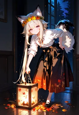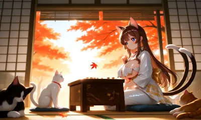 (自動生成タイトル) 秋の和室で猫耳少女と猫たち