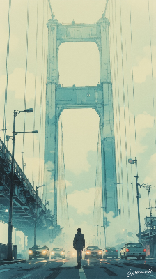 霧の橋を歩く人/スマホ壁紙アーカイブ